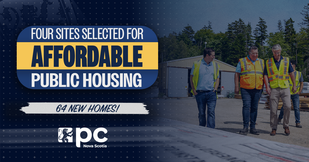 More Nova Scotians will soon have access to safe, affordable homes as our PC government continues accelerating its historic housing buildout. Sites in Middleton, Windsor, Shubenacadie, and Springhill have been selected for new public housing developments that will create up to 64 new homes — part of our government’s plan to build 515 new public […]